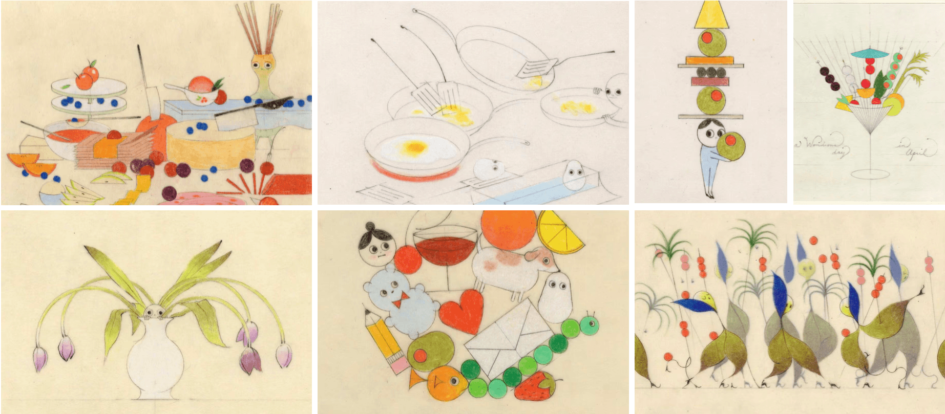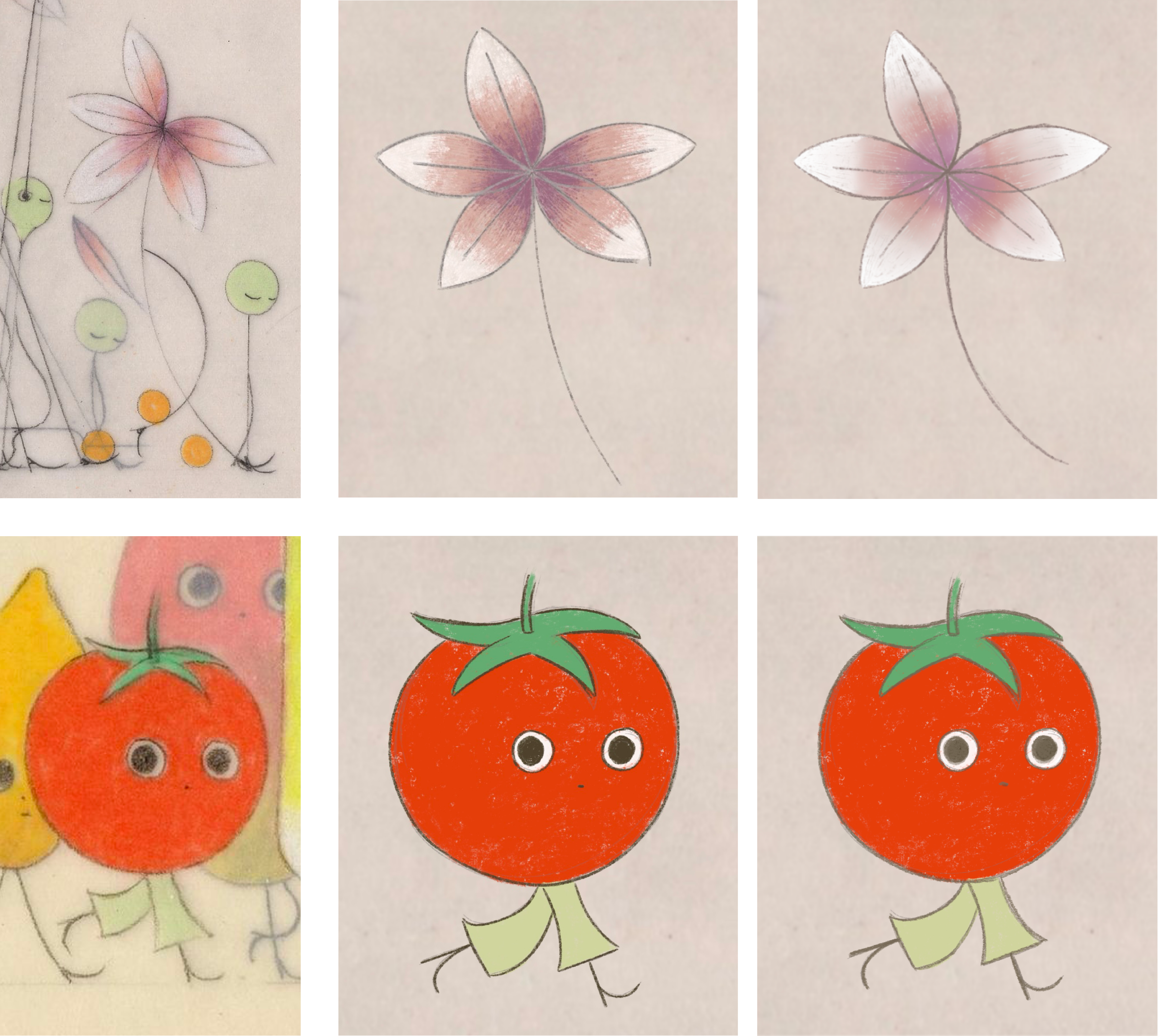 I started by digitally replicating her illustrations in Procreate, experimenting with different brushes and blending methods to achieve the textured, analog feel of her work.