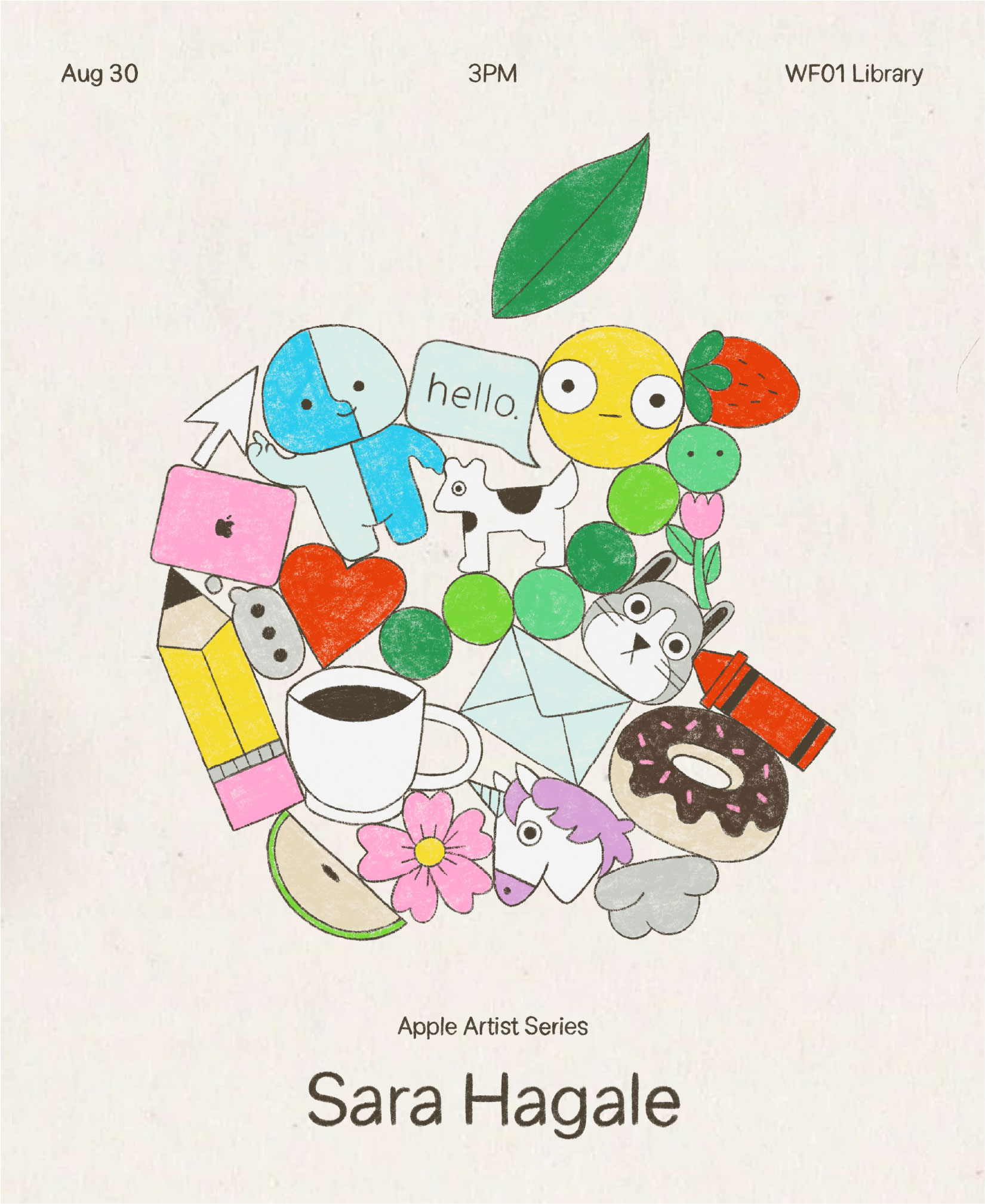 This was a personal project I did during my internship at Apple. It involved researching and referencing an illustrator's style to design an Apple logo that promotes a fictional artist showcase series.