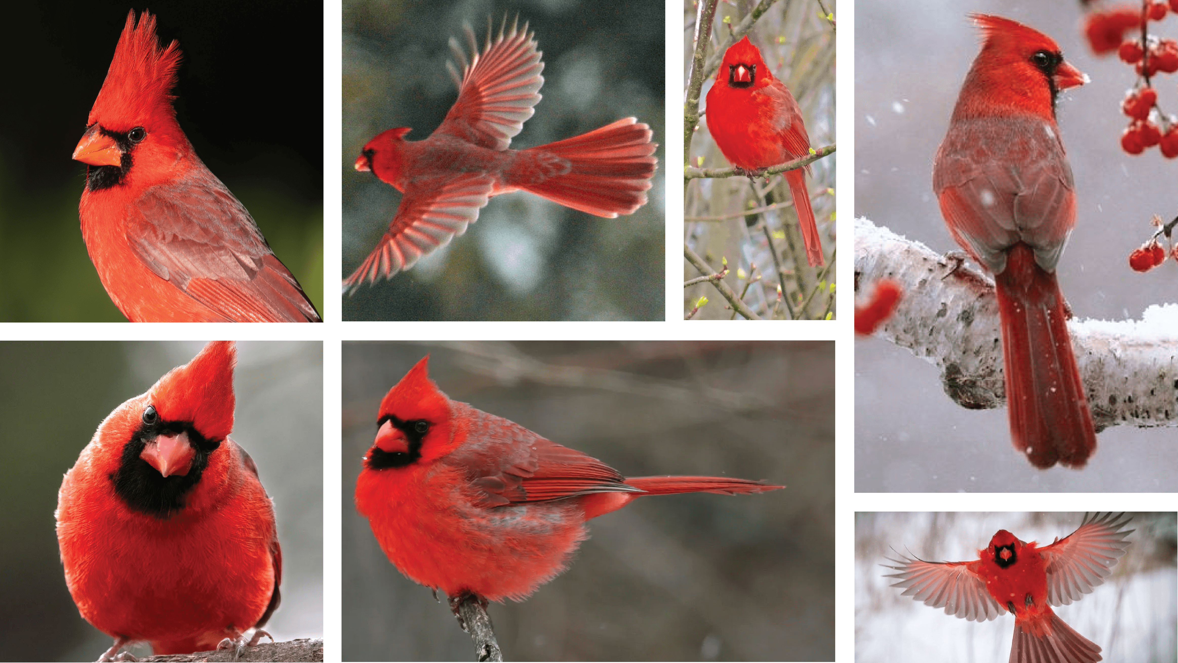 To begin, I gathered images of cardinals to obtain a better understanding of the creature's form. Referencing these images, I identified the basic shapes that make up the bird which served as the foundation of my initial sketches.