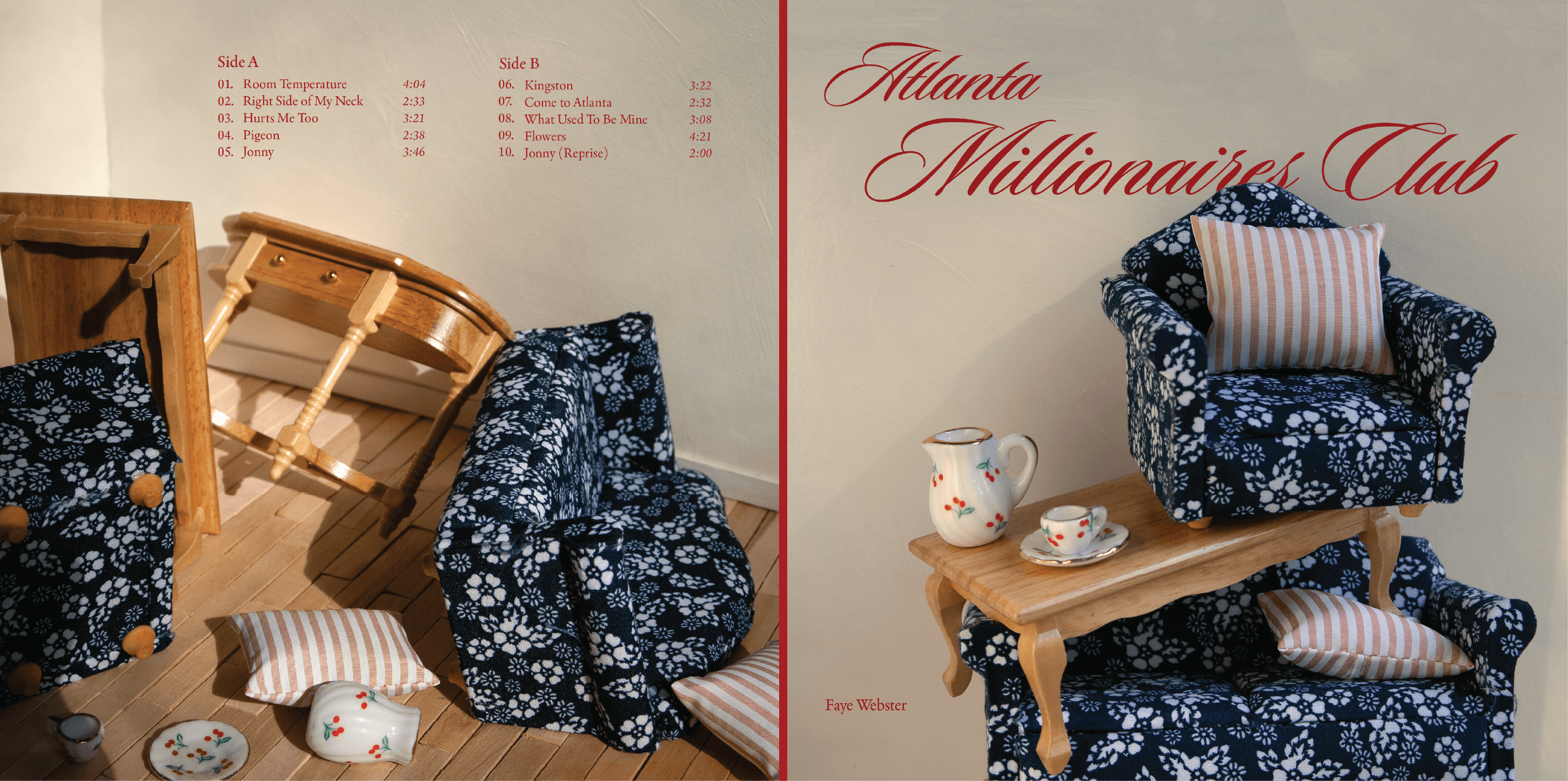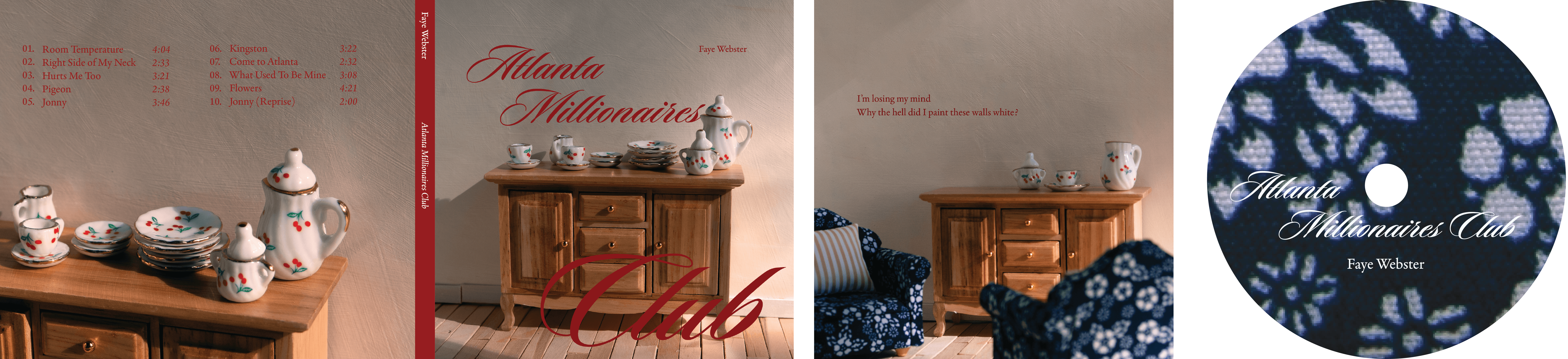 The album I chose for this project was Atlanta Millionaires Club by Faye Webster. This collection of songs embodies loneliness and longing for what once was. I communicated these themes by constructing scenes with miniature dollhouse furniture that convey feelings of melancholy and nostalgia while also encapsulating the album's elegance.